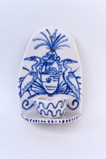 From my last bag of pure beautiful porcelain before I switch to terra cotta next year. These beauties are blowing my mind. Craft at its best: hand built, hand formed, freehand artist illustrated, hand painted w gold luster.