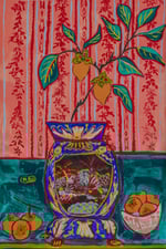 Persimmon branch Vase painting with icon Florida bowl. This work has been signed and sealed. Helping Obadiah and I get to Gainesville. You can read more on the website about the importance of the Gainesville Series. Thank you xx