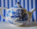 Designed from a traditional English Tea pot and daring you to sit down, relax and have a spot of tea. A daily ritual in our home. There is nothing we enjoy more than the slow sip of a cup of tea together. Now you can have it in style as you admire this artist Illustrated hand-painted one of a kind vessel. Signed by the artist on the bottom. Ready for use, food safe. Handwash for longevity.